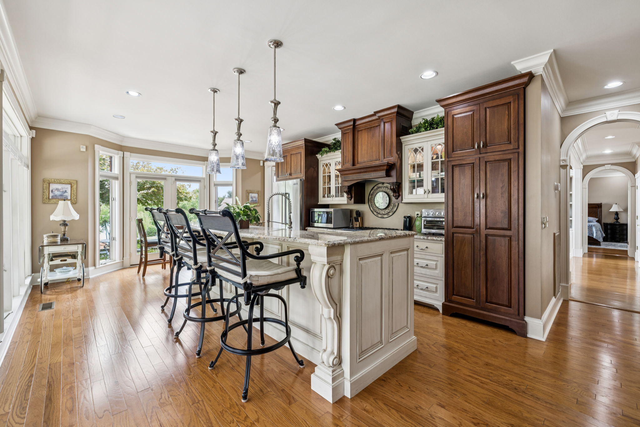 Step into a grand two-story foyer where a graceful staircase sets the tone for the home’s refined style. The traditional layout flows into a sunken living room with expansive windows that fill the space with natural light and capture stunning views of the lake. Built-in cabinetry frames one of the home’s three fireplaces, adding both function and beauty. A dedicated wine room and a spacious formal dining room with exquisite moldings connect seamlessly to a butler’s pantry featuring granite countertops and custom cabinetry. The chef’s kitchen is a showpiece, including professional-grade Thermador and Viking appliances, a center island, a pantry, and a bay window that perfectly frames peaceful lake scenery.