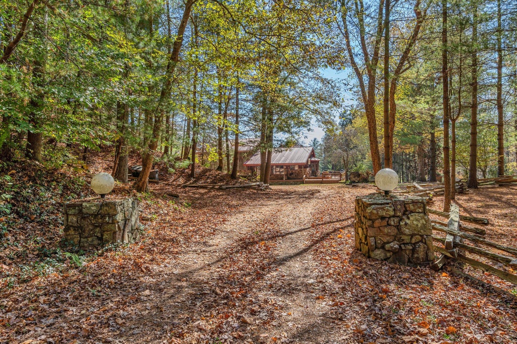 42 acres of spectacular views and peace and quiet! Home comes equipped with hi-speed Internet, game room, wet bar, security system, built-in gun safe into wall, whole house vac system, passive solar/sunroom, inground pool and hot tub. Grounds include 100' well, spring fed lake with bass, hunting posts, 3 hole golf course, multiple patio and decks, Koi pond, fire pit, detached shop/shed with Polaris and tractor (can convey), California fur wood and Arkansas Rock exterior. 10 minutes to historic downtown Pulaski. Currently serving as a very popular AirBNB, all items in house/on grounds can convey.