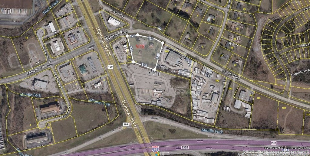 Property is approximately 2.7 acres at an intersection with high traffic counts and high visibility from State Hwy 109, has access through the existing Thornton's. Is zoned Commercial General in Lebanon TN