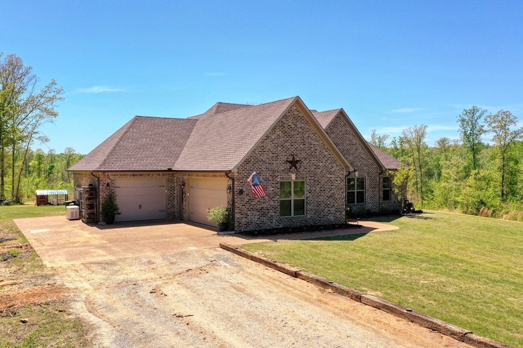 Nestled on 29.9 acres with a ¼-mile road frontage, this spacious 3-bed, 3-bath home at the end of a long driveway offers a tranquil retreat. Boasting 2250 sq ft, the open concept living/dining/kitchen area features a stone wood burning fireplace, granite countertops, a large work island, and hardwood floors. The master suite includes a walk-in closet and a step-in tile shower, while a mother-in-law suite with a private bath and an additional guest bedroom and bath provide ample living space. An oversized 2-car attached garage, a single attached garage which was originally built for boat storage now serves as a shop and a storage building offer practical storage options. Full house Generac Generator if needed. All this and a chicken house with run! Enjoy the serenity of nature with deer, turkey, and rabbit sightings. Home located just 4 miles to Lake Halford, a thousand acre public lake, 20 miles to the charming town of Huntingdon, TN and about 30 mile to Jackson, TN.