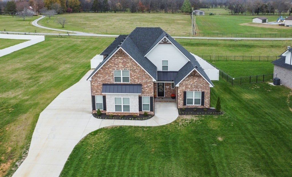 Seller offering $10,000 buyer credit with accepted offer! Move-in ready, HUGE LOT and fenced back yard in a boutique neighborhood! Stunning ALL BRICK home, perfectly situated on a sprawling .65-acre lot in a serene setting backing up to a farm. Perked for 3 beds but has a FOURTH bedroom option (or use it as office). This thoughtfully designed home offers a spacious open-concept floor plan ideal for entertaining, featuring a large living area and a covered back patio overlooking a FULLY FENCED backyard & outdoor fireplace, with farm animals in the distance, AND lots of space to play in the expansive front yard. Enjoy the beauty of farm life without the work! The kitchen shines with custom cabinets, granite countertops, coffee bar, upgraded induction range and a cozy dining/breakfast area. The primary suite is a true retreat with a spa-like bathroom, tiled shower, and a custom walk-in closet. Upstairs, the bonus room with a WET BAR provides additional space for entertaining, relaxing, or hobbies. A flexible office or potential 4th bedroom adds to the home’s versatility. Enjoy the charm of hardwood floors throughout the main level and stairs, with plush carpet in the bedrooms for comfort. Nestled in a prime location near I-24, 840, lake & golf course, on a storybook street this home also benefits from county-only taxes and access to Stewarts Creek schools.