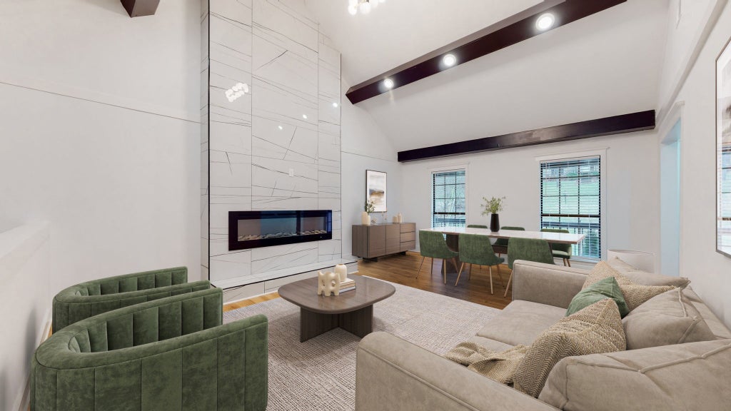 Appraisal & Inspections have been done & requested repairs completed. Step inside this breathtaking move in ready home featuring soaring vaulted ceilings, stunning beams, gorgeous flooring, a striking stone fireplace, and an abundance of natural light. You have to see it in person to truly appreciate its beauty! The exceptional kitchen boasts high-end finishes, quartz countertops, top-of-the-line Samsung appliances, and opens to a covered deck overlooking a serene, tree-lined backyard. Completely renovated in 2023, this home offers brand-new electrical, plumbing, roof & gutters, HVAC system, tankless water heater, and flooring throughout. The main level includes 3 spacious bedrooms and 2 bathrooms, while the lower level adds 2 additional bedrooms and 2.5 baths. The primary suite features a massive walk-in closet with custom built-ins and a spa-inspired bathroom with a luxurious soaker tub, double vanities, a beautifully tiled shower, and stunning marble accents. The walkout basement opens to a fenced yard with mature trees and a covered grilling area, perfect for outdoor entertaining. With a charming covered porch and ample parking on both levels, this home truly has it all! No HOA.