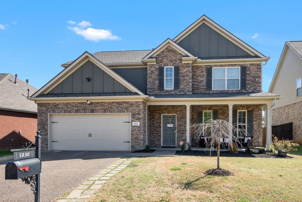 This spacious 5 bedroom, 3.5 bath house is perfect for your large family! Open floor plan with primary bedroom downstairs, 4 bedrooms upstairs with a large bonus room and 2 full bathrooms. TWO LAUNDRY ROOMS! Large walk in pantry with updated shelving. Great front porch and patio area to enjoy grilling this summer! Sidewalks throughout the neighborhood makes family walks and bike rides a breeze. Community pool, green spaces, and pond. Community events and food trucks give the family tons to do within walking distance. TRIPLE STEWARTS SCHOOLS!