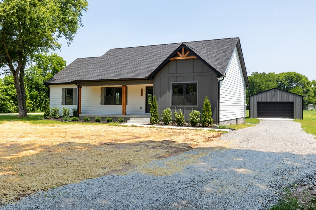 Discover your dream home nestled on a sprawling 2.63-acre lot in the picturesque Tennessee countryside! This stunning new construction offers a beautifully designed 3-bedroom, 2-bath residence with modern finishes throughout. From the open floorplan to the elegant James Hardie siding with cedar accents, every detail has been thoughtfully crafted. Inside, you’ll find sleek quartz countertops, black stainless appliances, a tiled shower, and spacious living areas designed for both comfort and style. Step out to the covered back deck—complete with a warm wood ceiling—perfect for relaxing or entertaining while soaking in your peaceful surroundings. A 24x30 shop is also included, ideal for hobbies, extra storage, or use as a garage. With an encapsulated crawlspace for added protection and a 1-year builder’s warranty, this home delivers both beauty and peace of mind. Schedule your showing today and claim your slice of paradise!
