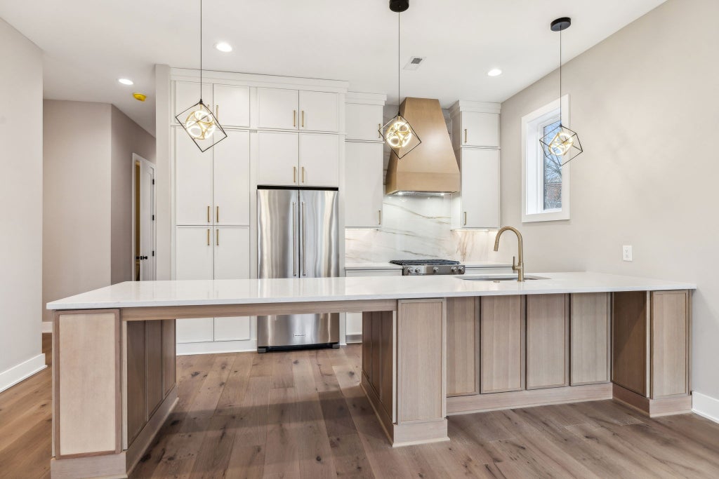 Enjoy a lower mortgage payment with a temporary rate buydown. Ask for details! Enjoy contemporary living in the heart of West End within minutes to restaurants, Vanderbilt University, Belmont University, Centennial Park, Richland Park Greenway, and more. This newly completed end unit has 4 large bedrooms, a small fifth bedroom/office/hobby room, 4.5 bathrooms (4 large bedrooms are en suite), tall ceilings, ample light, ceiling-height kitchen cabinets, KitchenAid appliances, Quartz kitchen counters, tankless gas water heater, dual laundry rooms, and wood floors in all living areas, and bonus room with wet bar plus an attached two-car garage with extra tall ceilings for future storage. The primary bedroom has dual walk-in closets. Garage has 220v outlet for electric car charging.