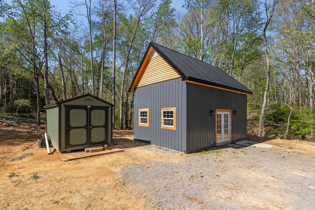 This property gives you that peaceful, easy feeling with a little over 3 acres. A natural spring/creek, deer and wildlife add to the tranquility. New construction barndominium with spacious bedroom upstairs in loft. 1 full bath downstairs. This property offers lots of possibilities for adding additional square footage, or if you are looking for weekend getaway for hunting, camping, etc., this is the place.