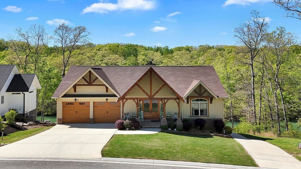 Your Dream Lakefront Home Awaits on Watts Bar Lake! Experience luxury lakefront living in this custom-built CRAFTSMAN dream home nestled on the shores of beautiful Watts Bar Lake. Enjoy year-round water access and serene LAKESIDE COVES in a private, gated community. Features That Will Captivate You: Towering cathedral ceiling with exposed beams, and specialty primary tongue and groove Stunning Craftsman Woodwork throughout the home, showcasing impeccable attention to detail. Custom, ornate, Cherry Cabinets with soft closing and pull outs. Cozy Wood-Burning Fireplace to warm up your evenings. Expansive Covered porch is the prime spot to wind down your day. Two-Slip Private Dock for effortless boating and water activities. Spacious Workshop—perfect for hobbies or extra storage. Main level garage will fit full size F250 with room left! Community Amenities: Exclusive Clubhouse for gatherings and events. Secure and serene gated community for peace of mind. Whether you're sipping coffee on the porch overlooking the water or exploring the lake, this home offers an unmatched blend of comfort and elegance. Make this your lakeside sanctuary today! Contact us now for a private showing!