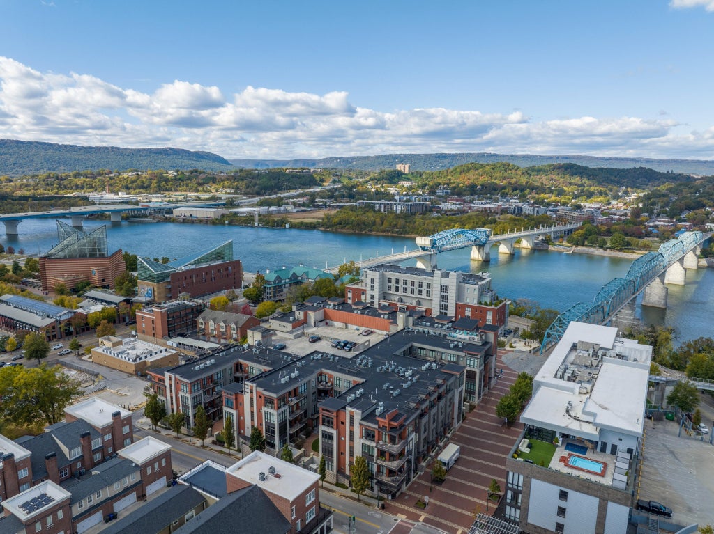 Whether you are looking for the convenience of urban living or just a fun weekend residence, then look no further than this one level condo at the desirable Museum Bluffs Parkview condominium community in the heart of downtown Chattanooga! This end-unit comes with 2 parking spaces and a storage unit and has a wonderful open living plan with windows galore, offering tons of natural lighting and a private balcony for additional dining or entertaining. The kitchen has quarts counter tops, stainless appliances, a pantry, and a center island with a raised breakfast bar with pendant lighting and is open to the dining area. In turn, the dining area is open to the living area and also has access to the balcony providing a great flow for everyday living. Both the living area and the bedroom have wall mounted electric fireplaces adding to the appeal, and a bonus room off of the kitchen is perfect as an office, studio or even an exercise room. The bedroom has a walk-in closet with a stackable washer and dryer, as well as a private bath with a separate shower that has tile and glass surround. Your coveted storage unit is just down the hall, as is access to the parking garage where you will find your covered space just off the 3rd floor elevator vestibule, and your uncovered space just one level up on the parking deck. Head up to the building roof top deck to take in the fantastic views of downtown Chattanooga, the Tennessee River and our local mountains, and enjoy the ease of being able to head out by bike or on foot to the many downtown attractions, including the Aquarium, the Hunter Museum Art district and the Walnut Street walking bridge to the North Shore restaurants, shops and parks. In addition, it is super convenient to schools, hospitals and so much more, so please call for more information and to schedule your private showing today. Information is deemed reliable but not guaranteed. Buyer to verify any and all information they deem important.