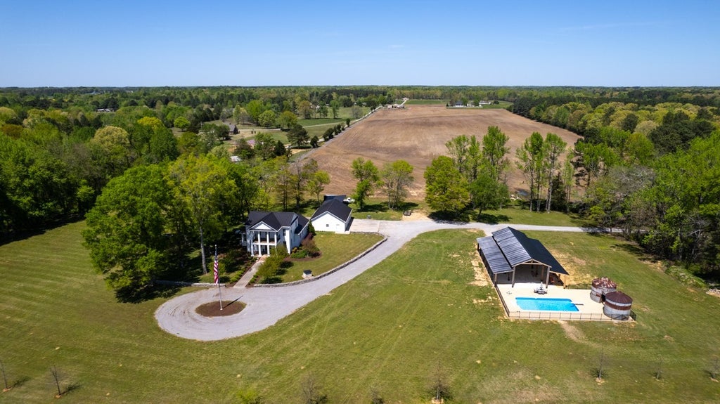 This beautiful 4BR/4BA colonial estate in rural limestone county could be your dream come true! Gorgeous columns on the front porch and 2nd story balcony, and a custom rock wall are the touches that really set this home apart. Primary suite is on the first floor along with an office, foyer, kitchen, breakfast room and formal dining room. The second floor has two full baths and four additional bedrooms. Outside features a patio, 3-car detached garage, concrete parking area, attached 3-bay shed for equipment, inground pool and two repurposed silos serving as a pool equipment storage and a 1/2 bath. Large pavilion with concrete flooring and a custom log cabin help make this property special.