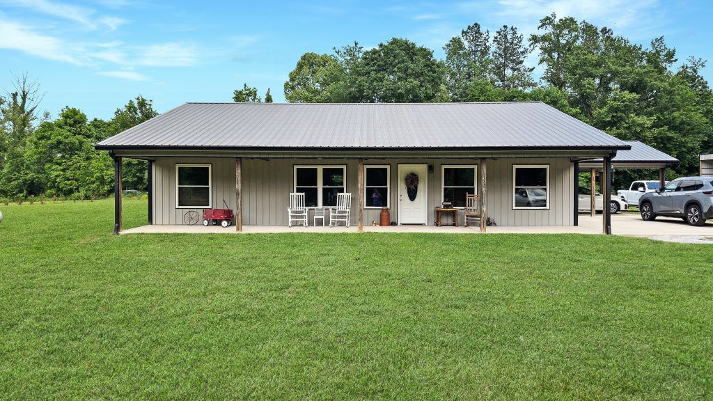 Dover, TN Mini-Homestead on 5.2 Acres – Main Home + Guesthouse + Serious Workshop Space Welcome to your private retreat in the heart of Dover! Built in 2018, this 3 bed, 2.5 bath home offers 1,600 sq ft of charm and versatility, plus a fully equipped 594 sq ft guesthouse and garage setup—all nestled on 5.2 beautifully maintained acres. The main home features hardwood flooring, oak trim, textured ceilings, and an open-concept living space anchored by a cozy gas fireplace. The kitchen includes a single bowl farmhouse sink, lazy Susan cabinets, dishwasher, refrigerator, and an electric stove with gas hookup available. The 19x9 laundry room doubles as a utility space with built-in shelving and a half bath. The primary suite includes a sliding door to the patio, walk-in closet, and a farmhouse-style door to a full bath with tub/shower combo and single vanity. Bedroom three has its own private bath featuring a walk-in tiled shower with rain head, walk-in closet, and single vanity—perfect for guests or a private suite. Enjoy outdoor living with an 8x48 covered front porch, 69x16 backyard patio, 24x30 pool deck surrounding a 27' round above-ground pool, 36x14 concrete RV carport, 20x18 metal carport, 28x48 lean-to, and a 10x20 she shed. The guesthouse is a gem on its own with a gas stove, refrigerator, built-in cabinets (some on wheels), a tub/shower combo bath, split HVAC, and its own septic tank. TVs in the guesthouse convey. The 33x29 garage is attached to the guesthouse and features built-in storage, a working generator, split HVAC, washer/dryer hookups, and a freezer that can stay. Additional perks include privacy trees, a well with filtration system, propane tank, apple and pear trees, and even a Cub Cadet 50" mower and tractor that can convey. This one checks every box for comfort, flexibility, and full-on country living. Don't miss it!