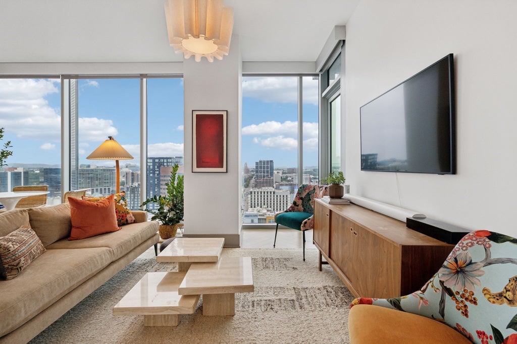 CHECK OUT THE NEW PRICE: Sophisticated and elegant, The Residences at Broadwest truly represent the best in class for midtown luxury. Conveniently located at the edge of downtown but outside the busy “tourist district” this location allows for easy access to the Interstate, downtown Nashville, Vanderbilt, hospitals, as well as a quick commute to the Nashville airport. Floor to ceiling glass and a big walk-out balcony of this 20th floor CORNER UNIT offer unparalleled views of gorgeous sunsets and the city lights of West Nashville. Wolf Appliances and a SubZero refrigerator fit this open concept kitchen perfectly! Marble counter tops and backsplash, remote/automatic blinds, herringbone hardwood floors throughout.. all top of class! 34th floor amenities include rooftop pool and cabanas, library, golf simulator, gym, steam room, sauna and expansive owner’s lounge. Exceptional concierge services and security. TWO parking spots included (easy access to elevator!). Hotel services also available from CONRAD include room service, housekeeping, and valet parking.