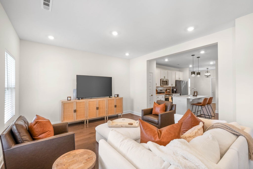 End Unit Opportunity! Discover the Elmwood Townhome in the Sought-after, Resort-style Community of The Preserve at Belle Pointe. Just steps from Exceptional Amenities — including a Clubhouse, Pool, Park, and 24-hour Fitness Center — This Home Offers Both Convenience and Luxury. Enjoy Charming Streetscapes Ensuring Each Home Feels Distinct. This Inviting Townhome Features 3 Bedrooms, 2.5 Baths, and an Open-concept Living Space Perfect for Entertaining. The Welcoming Front Porch and Oversized Owner's Suite Provide Comfort and Style, While Large Windows Fill the Home with Natural Light. The Stunning Kitchen Boasts Crisp White Cabinets, Sleek Quartz Countertops, and Upgraded Light Fixtures — a Beautiful and Functional Centerpiece for Your Home. Don't Miss Out on This Exceptional Property!