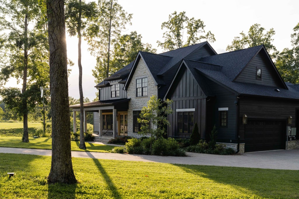 Nestled in the exclusive Blackberry Ridge community just south of Leiper’s Fork, this custom-built home by Hewn Custom Homes offers 4 bedrooms, 4.5 bathrooms, and 3,868 square feet of luxurious living space on a private 3.61 acre park-like setting lot. The open floor plan features a gourmet kitchen with Café appliances, a large center island, hidden scullery, and walk-in pantry, flowing seamlessly into a living area with a stone fireplace, custom built-ins, and sliding glass doors that open to a covered back porch with a stone fireplace, lounge and dining area. The main-level primary suite boasts white oak beam ceilings, porch access, and a spa-like bathroom with double vanities, stand alone tub, walk-in shower, and a spacious closet. Upstairs includes three en-suite bedrooms with walk-in closets, a bonus room, and unfinished attic space ready for expansion. Additional highlights include a mudroom, laundry room, three-car garage with gym and sauna space, and a flat, grassy backyard perfect for a future pool, all surrounded by dedicated green space and a park-like wooded area ideal for a garden, pasture, or hobby farm—offering privacy, beauty, and convenience just minutes from Franklin and the charm of Leiper’s Fork.