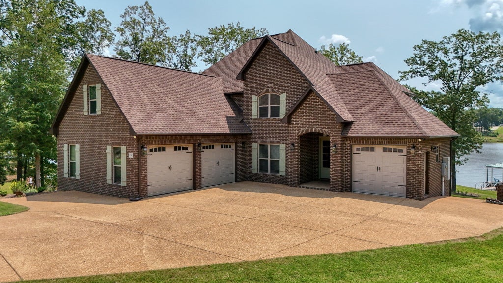 Nestled on half an acre this 4 bed 3 bath home is a water enthusiast's dream. Every inch of this stunning residence has been designed to offer luxury, comfort and functionality. With 3400 sq ft it is perfect for family gatherings. Enjoy water views from main areas of the home, the decks or around the fire pit. Open floor plan features 4 bedrooms and 3 baths with a large bonus room/5th bedroom. The focus is the living area with an impressive dry stack gas log fireplace, built ins, charging station, spacious kitchen with granite, stainless steel appliances, gas cooktop, coffee bar and pantry. Laundry rooms are conveniently located on both floors. The primary bedroom has lake views and French doors that open onto the deck. Primary bath offers a curb less tile shower, double vanities and soaking tub. Additional features include double and single attached garages and whole house generator. A private Alumna Dock with wet steps is perfect for launching fishing or boating excursions.