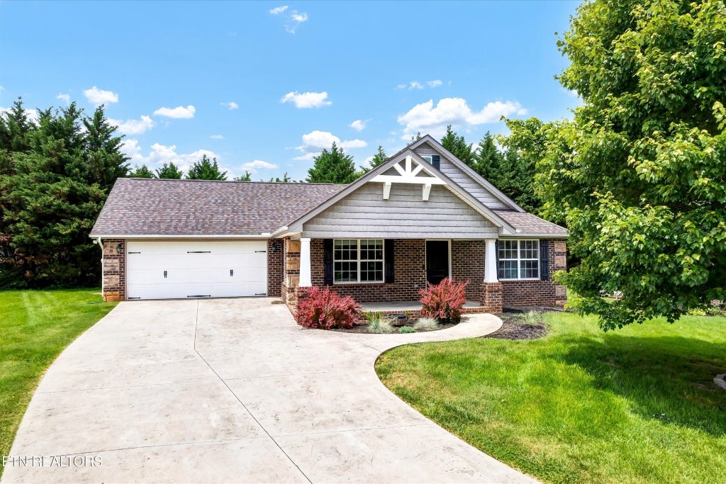Welcome to this charming brick ranch offering 3 spacious bedrooms, 2 full bathrooms, and 1,435 square feet of thoughtfully designed living space. Step inside to a bright, open floor plan featuring brand new LVP wood-look flooring, arched doorways, and vaulted ceilings that enhance the home's warm and inviting feel. This home also has new paint throughout! The large kitchen is perfect for everyday living and entertaining, with white cabinetry that provides both style and ample storage. The oversized primary suite is a true retreat, complete with coffered ceilings, a walk-in closet, and a luxurious ensuite bathroom featuring a dual vanity and a walk-in shower. The additional bedrooms are generously sized, perfect for family, guests, or a home office. Enjoy your mornings on the covered front porch and unwind in the evenings on the back patio. A 2-car attached garage adds convenience and extra storage. Don't miss your chance to make this well-maintained home yours!