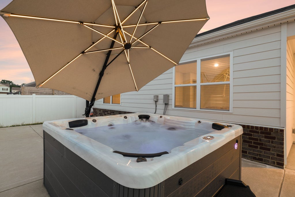 SELLER UPGRADES INCLUDE: A brand-new herringbone tiled shower in the primary suite (replacing the standard plastic insert), A massive 20’x40’ concrete patio ($12,000 upgrade), A 5-person Four Winds Spa Honolulu II HOT TUB with a large lighted patio umbrella ($10,000 value)!