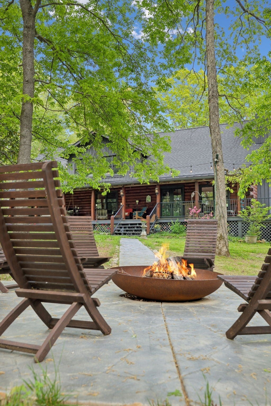 Incredible lake views!! Countryside serenity meets luxury living in this immaculately restored and fully renovated Leiper’s Fork log home. Tucked into a coveted rural location in Middle Tennessee that rarely sees homes like this one hit the market, enjoy curated details and modern amenities built into a flowing masterpiece design that retains classic aesthetics and hand-selected vintage accents like salvaged barn wood and farmhouse fixtures. The main level features an open floor plan for shared moments with guests, plus bedrooms and full baths. Also enjoy a luxury chef’s kitchen with all-new Dacor appliances, custom maple and oak cabinetry, quartz countertops, a cozy fireplace, oversized windows, and full-lite sliding doors that wash the home’s interior in warm natural light. The upper level has inviting private accommodations with a work-from-home office & open flex space. The lower level boasts a fully finished suite with private entry, a full kitchen and bath, and a game room, perfect for weekend guest stays or separate living quarters. With primary suites and en suite baths on both the main and upper levels, options abound for the owners to choose their private sanctuary. Septic permitted for 3 bedrooms -- home includes additional flexible spaces that could be used as an office, bonus, or guest room. Outdoors, the almost 6-acre parcel at the end of a private drive on a shaded knoll features peaceful, wooded terrain and views of a 3-acre aquamarine lake, all of which can be enjoyed from the home’s outdoor living amenities like the welcoming fire pit, 60ft of covered porch space, sun-kissed backyard deck, and relaxing spa pool. At 5 minutes to Leiper’s Fork, 25 minutes to downtown Franklin, 45 minutes to downtown Nashville, and 50 minutes to BNA, your perfect country life awaits.