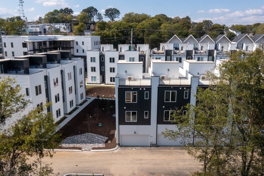 The Nations and Mid-town Nashville. High style design & high quality construction: Real sand & finish oak hardwood floors, healthier & more efficient heat & air systems, spray foam and blown insulation packages provide superior comfort and sound insulation. This courtyard facing 3 bedroom townhome includes 2 car garage and a Rooftop Deck that offers panoramic views. Mixed use building with multiple retail spaces.