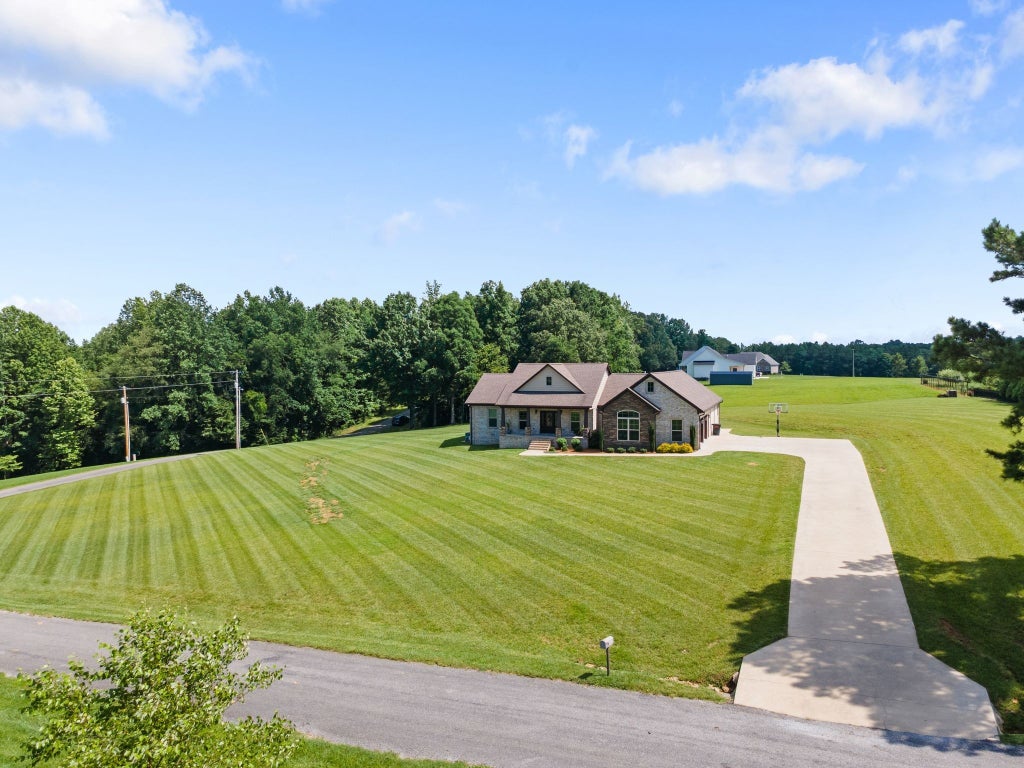 Dare we combine country living, luxury living, and affordability all in one property??...We dare! This custom built, ALL BRICK one owner home sits on over TWO ACRES, has an IN-GROUND POOL, and has NO HOA!! Open concept inside with finished engineered HARDWOOD FLOORS THROUGHOUT (no carpet anywhere) and heavy, solid core filled wooden doors. Custom stone work surrounds the gas fireplace in the great room which then gives way to an absolutely picture perfect kitchen featuring slate colored LEATHERED GRANITE COUNTERTOPS and bar top island, subway tile backsplash, matching stainless steel appliances, and HUGE WALK-IN PANTRY. Spacious laundry room offers built-in shelving and laundry sink just off the primary bedroom. Primary bathroom has tiled floors, large WALK-IN SHOWER, free standing luxury bathtub, dual vanities and a WALK-IN CLOSET. 6ft gun safe can stay!! Fully insulated garage and garage doors. This home also has a REBAR AND CONCRETE REINFORCED TORNADO SHELTER with industrial steel door! Come see this one ASAP before it's too late!!!