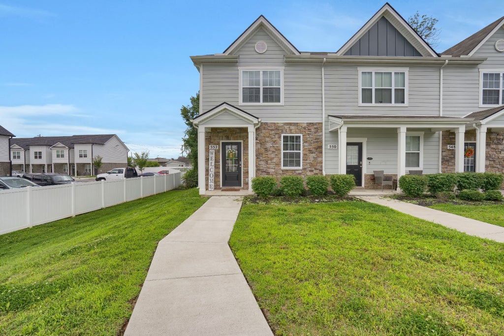 GREAT PRICE, END UNIT, LARGER PATIO AREA, UPGRADES....and Maintenance FREE! Welcome to 552 Ellen Rd – a beautifully maintained corner-unit townhouse in a maintenance-free community in Lebanon, TN! This 3-bedroom, 2.5-bath home offers an ideal blend of space, comfort, and convenience. SMART Home, Granite, and blinds included! Sellers added beautiful Accents walls & ceiling fans in 2 of the bedrooms, they also upgraded fixtures, added a backsplash, SS Appliances. The spacious primary suite is a true retreat, while the open-concept layout provides seamless flow between the living and kitchen areas, unit has a large covered Patio with storage! Enjoy the ease of low-maintenance living with HOA-covered lawn care and sprinkler system. Sidewalk-lined streets make the neighborhood perfect for evening strolls or morning jogs. Whether you're a first-time buyer or downsizer this home checks all the boxes. Minutes from shopping, dining, and major highways—this one won’t last! Unit has 2 Assigned parking spots. Seller can move quickly!