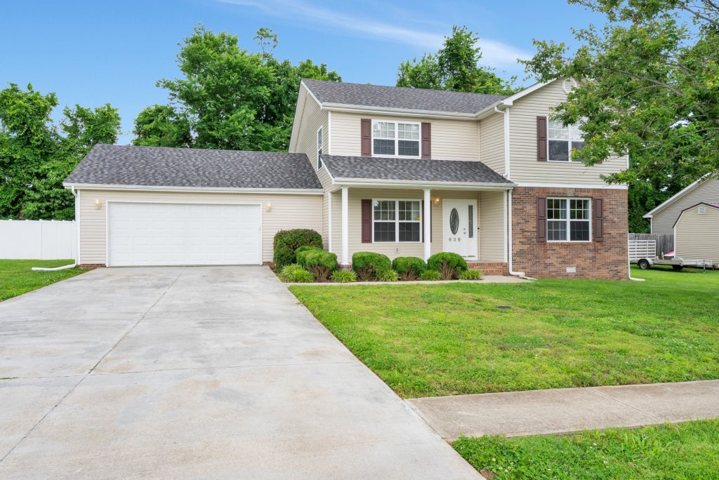 Located in Eagles Cove, this 4-bedroom, 3-bath home offers space, flexibility, and peace of mind — with no HOA and no flood insurance required. Recent upgrades include a new roof (2024) and dual HVAC systems installed in 2023 and 2024. Inside, the layout is ideal for both everyday living and hosting. The kitchen offers serious function with white cabinetry, an island, generous cabinet space, a separate pantry, and an oversized eat-in area that fits a full dining table. Just off the kitchen, you’ll find a large utility room with shelving and a full bathroom. The fourth bedroom downstairs has direct access to that bathroom, making it perfect for guests, a home office, or even a second primary option. Upstairs, three spacious bedrooms each have walk-in closets, ceiling fans, and great natural light. The primary suite includes two walk-in closets and a private en suite with a double vanity, shower/tub combo, and linen storage. Out back, enjoy a private, tree-lined yard with a walk-out patio and storage shed. The attached garage adds even more space for tools, seasonal items, or extra storage.