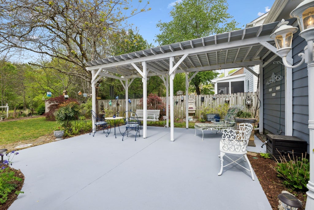 Surrounded on three sides by mature landscaping, this light-filled sunroom offers panoramic views of the lush backyard oasis. Enjoy your morning coffee, a good book, or a quiet conversation while listening to the gentle sounds of the backyard waterfall and koi pond.