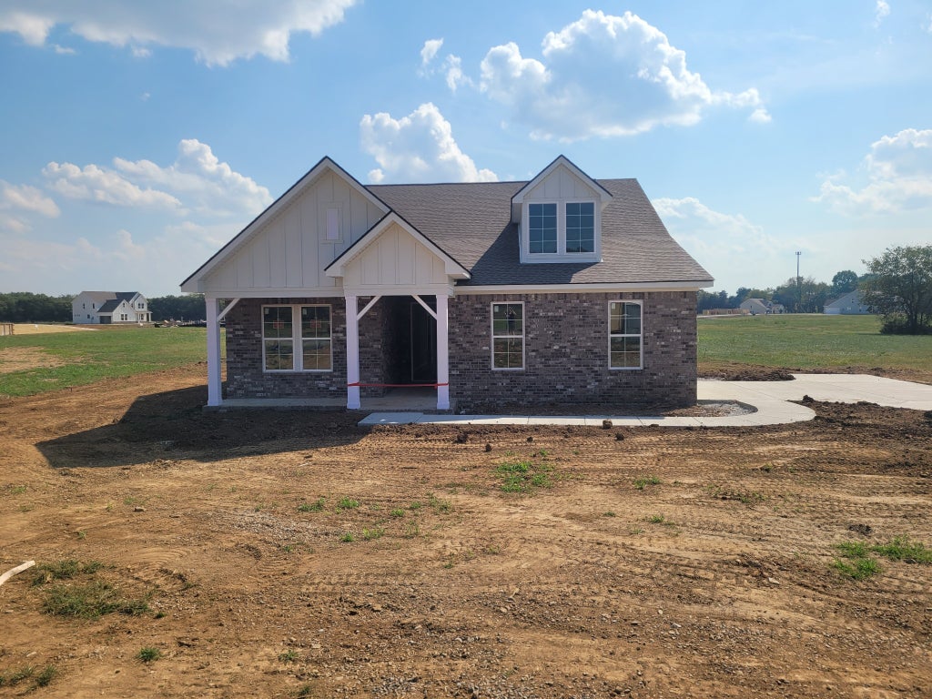 Estimated Completion: October 2025! Lot 28 Set on a serene ¾-acre homesite, this thoughtfully designed Casper plan offers 1,883 square feet of comfortable, modern living. With 2 bedrooms, 2 bathrooms, and a versatile flex room perfect for a home office or hobby space, the open-concept layout provides both functionality and flow. The spacious primary suite features a shower/tub combo and a generous walk-in closet. Inside, you'll find upgraded finishes throughout—including quartz kitchen countertops, crisp white cabinetry, a gas range, tiled bathrooms, and durable brick HardiBoard siding. Enjoy quiet mornings and peaceful evenings on the covered rear porch, and take advantage of the cozy gas fireplace, large walk-in pantry, and oversized lot that offers privacy and room to breathe. HOA allows chickens. This home is perfect for those seeking the charm of rural living with the convenience of quality new construction. Currently under construction—schedule your visit today!