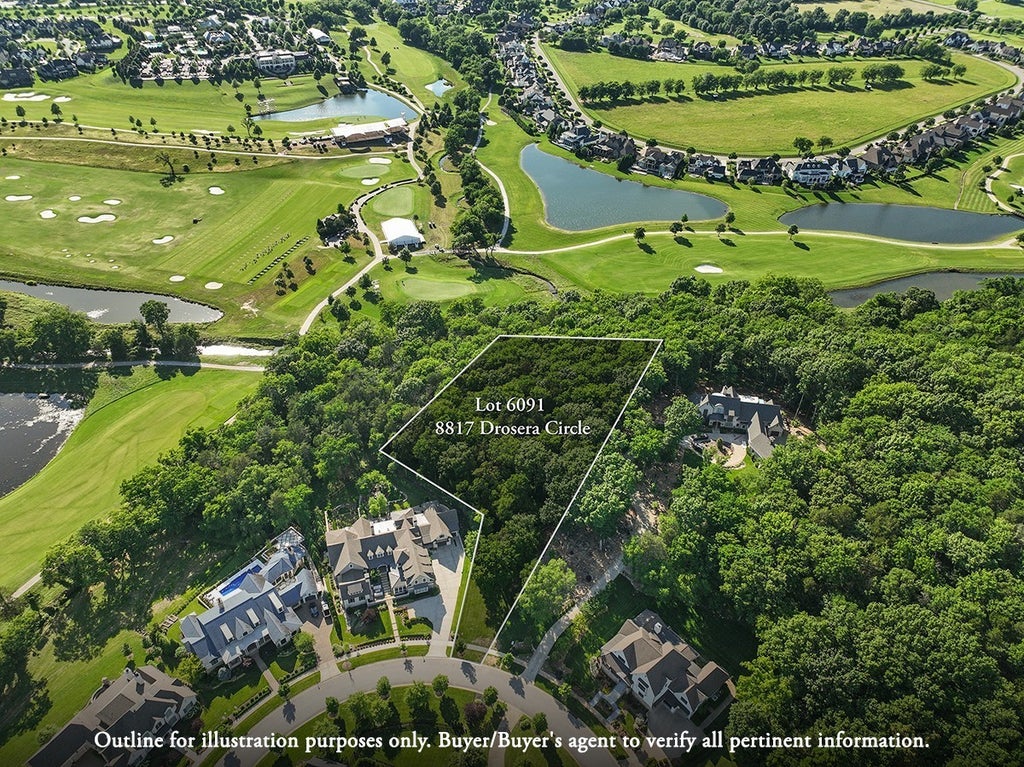 The “Pinnacle” Custom Homesite at The Grove, Lot 6091 is a custom building site for the Buyer who want it all – Privacy, Serenity, Acreage and a Park-Like Setting to build your dream home! Perched atop a high ridge adjacent to the 9th fairway and green and surrounded by wooded open space and separated from the golf course by a creek, this 1.67 acre homesite is large enough to build whatever you can dream. The private driveway will wind up to the building site, set back some 200’+ from the street. Enjoy the seclusion provided by mature hardwood trees ringing the property, as well as one of The Grove’s most coveted neighborhood streets on Drosera Circle! Bring your architect to design your home, or design-build with one of the Grove Signature Builders to make this a one-of-a-kind estate on the largest premier homesite in The Grove! Outline for information only purposes. Buyer/Buyer's agent to verify all pertinent information.