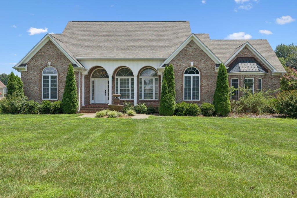 Price Improvement! This stunning all-brick, one-level home is set on a generous and level 1.25-acre lot, offering a peaceful and picturesque setting to enjoy every day. A charming fountain and arched front porch welcome you inside, where a spacious foyer opens into the living room featuring a vaulted ceiling, cozy fireplace, and double windowed doors that lead to the back patio and expansive backyard. Elegant architectural details continue in the formal dining room, highlighted by arched openings and a beautiful chandelier. The kitchen offers both space and function, with stainless steel appliances, granite countertops, vaulted ceilings, and ample cabinetry. A separate laundry room includes a utility sink and extra storage. The private owner’s suite is a relaxing retreat with a bay window, tray ceiling, walk-in closet, dual vanities, a jetted tub, and a separate shower—all set apart in a split-bedroom layout for added privacy. The home also includes a two-car attached garage with built-in storage cabinets and an additional storage room. This well-maintained home combines comfort, style, and space—schedule your showing today!