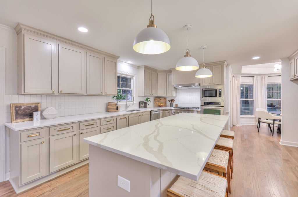 If you love outdoor living this show stopping remodeled home nestled in a quiet cul-de-sac in the highly desired Indian Point is for YOU! The beautiful kitchen includes a new Thermador gas cooktop along with an oversized island that houses a pellet ice maker and beverage fridge. The kitchen is rounded out with new dishwasher, coffee bar with floating shelving and an unbeatable walk-in pantry. A glimpse out the kitchen and you'll see an award winning pool with waterfall and flagstone surround. The well-appointed outdoor kitchen includes granite top, gas grill, mini fridge, along with a side burner & pot boiler. And there's plenty of covered seating space for all of your guests watching the chef or swimmers! Back inside you'll find a dedicated office off the living room with modern built-ins & dedicated oversized half bath. Gorgeous dining room with new lighting and accent wall. Owner's suite on main hosts an incredible coffee bar with ample owner storage, double walk-in closets and updated bathroom to include floating tub, open shelving, gorgeous vanity and new shower. Everyone's dream laundry space is on main level with drop zone, closed and open overflow storage space and even a full sized fridge. Pick your bonus space on main level or basement!! Better than new, this home features new sand and finished hardwoods on most of the main level-new carpet in upstairs bedrooms-new LVP in basement-fresh paint throughout-new lighting- updated closets-3 inch plantation shutters-New roof 2025! New exterior french doors sets off patio ordered and to be installed in October! More than 2 cars????The garage is supplemented by the oversized carport and detached storage building. Come see this home, you will not be disappointed!!!