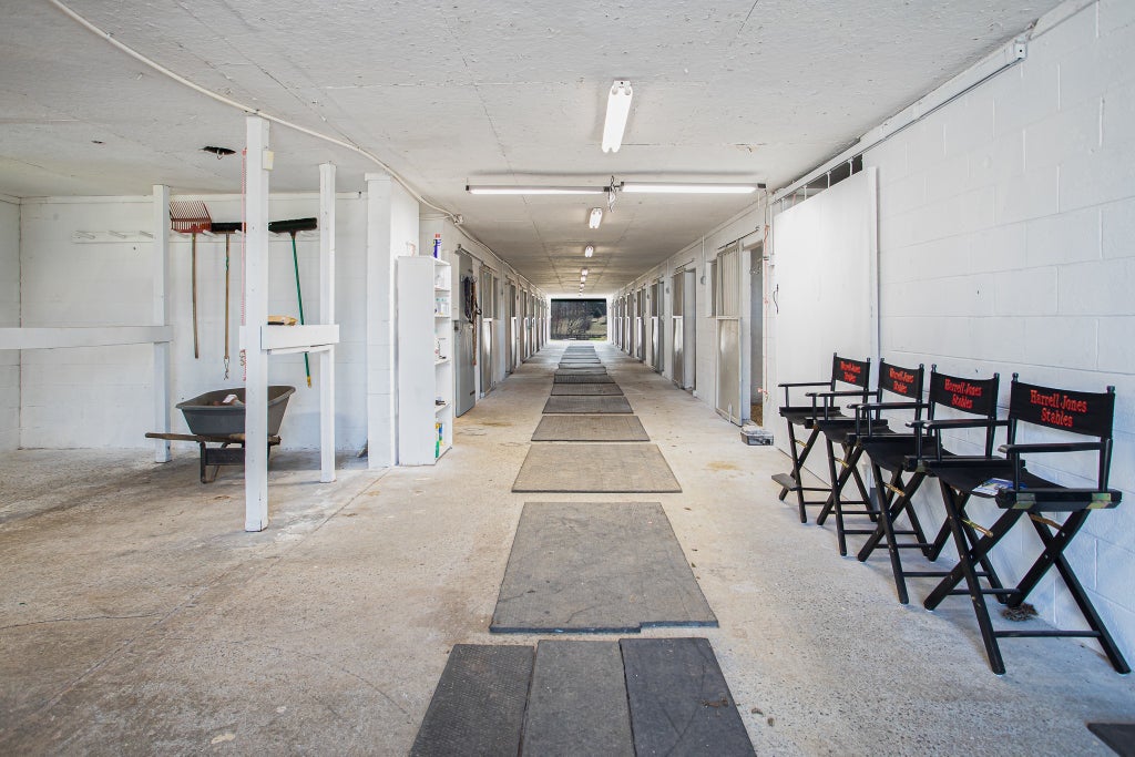 Fully equipped with tack room, feed room, office, wash bays, and even a full bathroom with hot water.