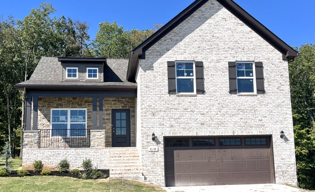 PLAN (1963 Elevation GHI) Buyer pays only $99 in closing costs! A very Brady split level, four sides brick home. Three half levels to this house with garage level featuring a full bath and Mancave/teen suite/In-law quarters. Great Room and Kitchen have 12 ft vaulted ceilings. You will love this hillside home that backs up to the woods. Deer everywhere. (7/23/25 windows but no sheetrock, windows and brick complete)
