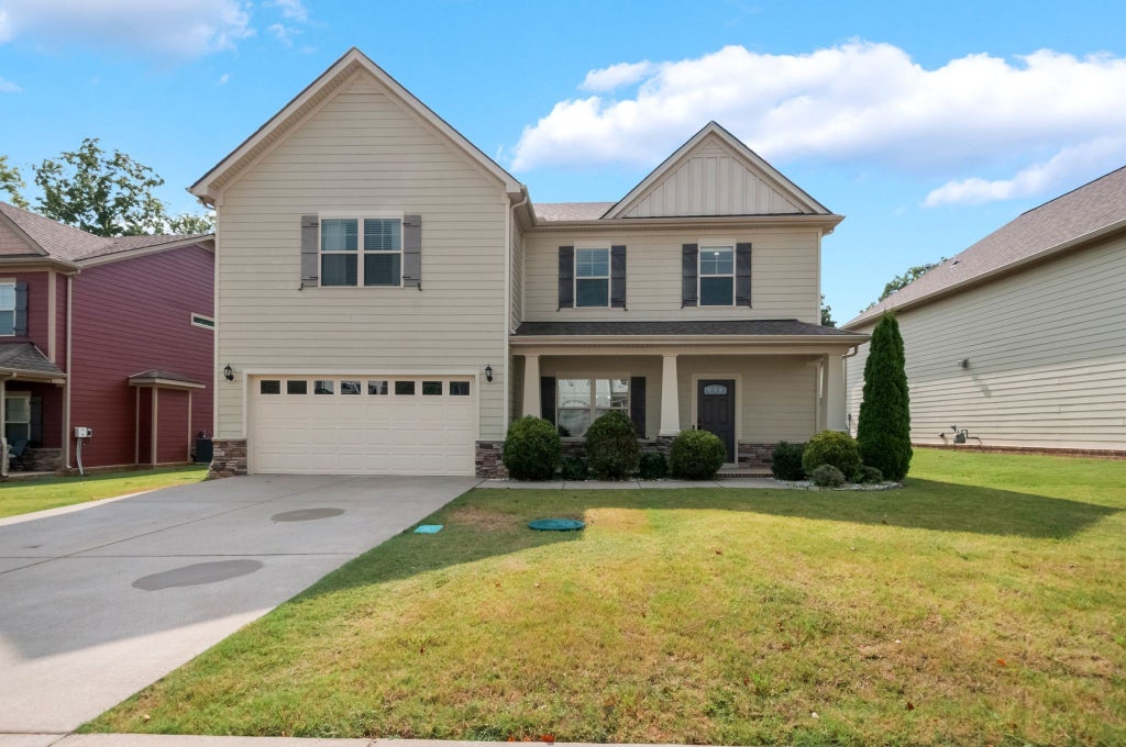 This beautiful home is move- in ready located in Cumberland Estates a sought- out neighborhood in Williamson County. The open floor plan gives you plenty of space for entertaining family and guest. laminate wood floors through-out on main level. The living room is very spacious with a warm and cozy stacked stone fireplace. The kitchen has stainless appliances, lots of cabinets, granite counters, and walk in pantry. Just off from the eat-in kitchen is the separate dinning room, access to covered back patio and fenced in private backyard. Primary bedroom with trey ceiling, fan, walk- in closet and bathroom with garden tub, shower and double vanity. Binds and shades on all windows. lots of storage. 2 car garage and security system in place.