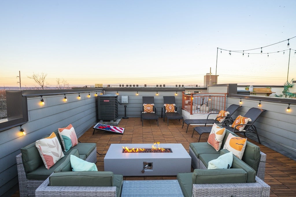 Luxury NOO STR-Eligible Townhome with Amazing Rooftop in Prime City Heights! Turnkey and fully furnished, this 3-story townhome is zoned MUL-A and eligible for Non-Owner Occupied Short-Term Rental (NOO STR) making it a proven income-producing property with $75k in rental revenue for 2024. Designed with modern elegance, it features an open-concept layout, high-end finishes, and an amazing rooftop deck offering panoramic views of downtown Nashville—perfect for entertaining or unwinding above the city. Interior highlights include stainless steel appliances, a spacious kitchen island, pantry, walk-in closets, hardwood and tile flooring throughout, and abundant storage. Ideally located just north of West End, and minutes from Midtown, Downtown, Vanderbilt, Centennial Park, OneC1TY, and Music Row, with walkable access to top-rated restaurants, shopping, and nightlife. Additional perks include a 1-car garage, generous street parking, low HOA fees, and flexible usage as an STR or personal retreat. A rare investment opportunity in one of Nashville’s most dynamic neighborhoods.