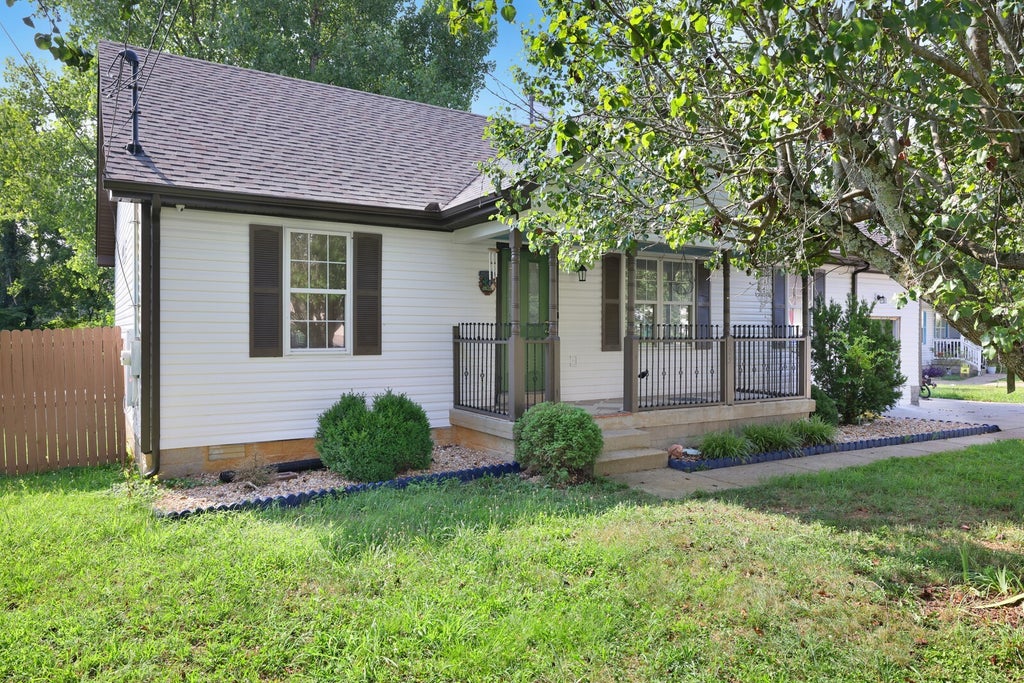 Due to no fault of the seller, this home is active again! Welcome to this charming 3-bedroom, 2-bath home offering 1,395 square feet of inviting living space. Step onto the cozy covered front porch and through the eye-catching green front door into a bright living room with soaring ceilings, a statement wood beam, and a cozy fireplace. The kitchen and eat-in dining area feature durable tile floors and plenty of natural light. The primary bedroom is conveniently located off the living room and includes an en-suite bathroom with a dual vanity for added comfort. A versatile bonus/flex room with tile flooring and a glass door to the driveway offers endless possibilities, ideal for a home office, playroom, or creative studio. Out back, enjoy a covered deck and patio area perfect for relaxing. A storage shed provides extra space for tools and gear, while the backyard offers room to garden, play, or simply unwind. The roof and water heater are only 1 year old! This home blends functionality with charm, don’t miss your chance to make it yours! Up to 1% lender credit on the loan amount when buyer uses Seller's Preferred Lender.