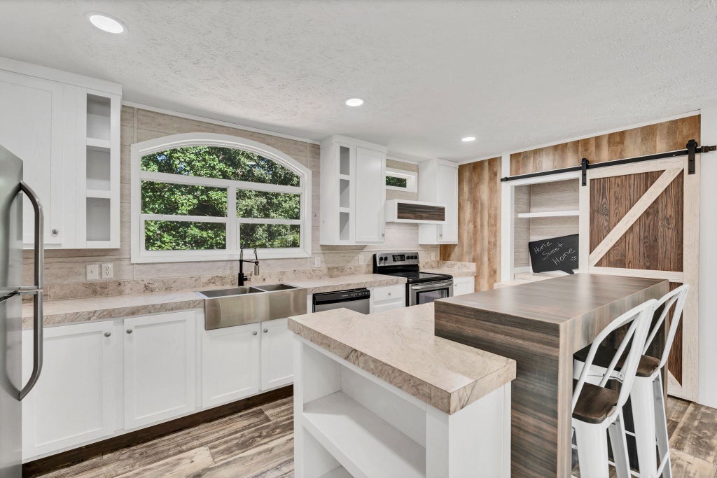 Escape to your private oasis! This newer manufactured home with piers(lender approved permanent foundation), boasting a permanent pier foundation, offers the perfect blend of indoor comfort and outdoor enjoyment. Imagine sipping your morning coffee on one of two spacious back decks, or pursuing your hobbies in the versatile two outbuildings. The partially fenced backyard provides a safe haven for pets or play. Recently installed leaf guards for the gutters. Inside, discover a thoughtfully designed layout featuring two bedrooms plus a dedicated office, ideal for remote work or a quiet study. The kitchen is a chef's delight with an expansive walk-in pantry, offering ample storage and organization.