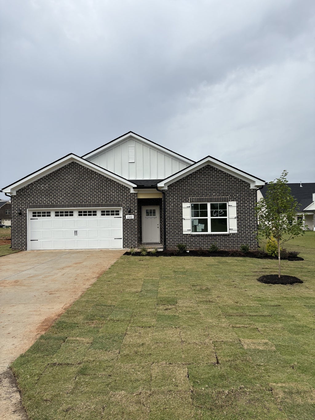 1705 Floor Plan (GHI Elevation) - 4 Side Brick One Level Home with 4 Bedrooms and 2 Full Bathrooms. Plan Features a Covered Patio with a Brick Exterior Fireplace. Open Concept kitchen with Large Island, Quartz Countertops, Tiled Kitchen Backsplash, and Under Cabinet Kitchen Lights. The primary bathroom features a 5 ft Ceramic Tiled Shower and Ceramic Tile Floors.