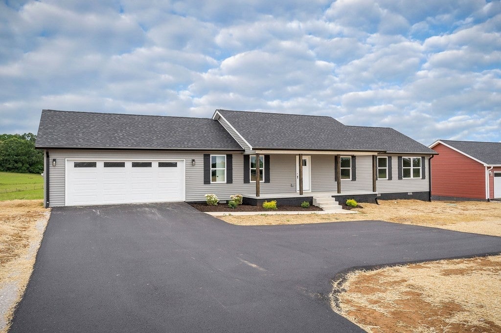 Seller has an accepted contract with a 48 hour first right of refusal contingency. This beautiful new construction offers 3 bedrooms, 2 full baths, and an open-concept layout filled with natural light. You'll love the vaulted ceilings, luxury vinyl plank flooring, and the modern kitchen featuring stainless steel appliances and white shaker cabinetry. The primary suite includes a walk-in closet and private bath with sleek fixtures. Enjoy peaceful country views from your backyard and easy access through the attached 2-car garage. Set on a spacious lot with wide-open views, this home blends quiet rural living with modern style and convenience. Move-in ready and waiting for you!