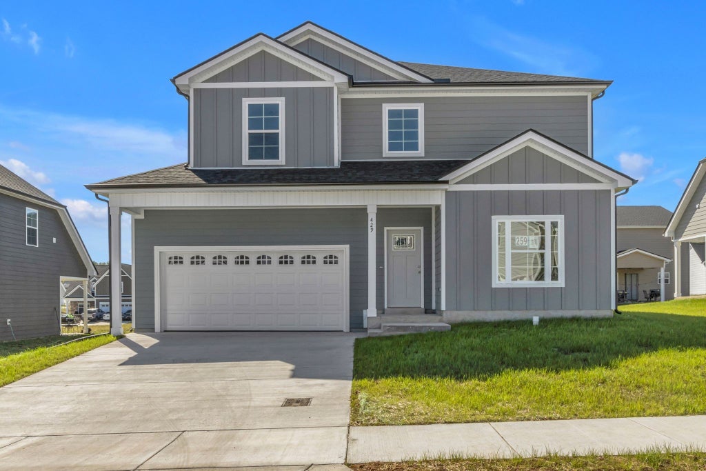Lot 259 - No model Home, Seller will pay 4% in closing cost for buyer. Welcome to this spacious 5-bedroom, 2.5-bath home designed for comfort and style. The primary bedroom is conveniently located on the main floor, offering privacy and easy access. The primary bathroom offers a touch of luxury with separate vanities, a garden tub, and a separate shower complete with a glass door. Step into the great room and enjoy the airy feel provided by the vaulted ceiling, perfect for relaxing or entertaining. Durable ceramic tile flooring enhances all wet areas, while the kitchen, great room, and primary bedroom feature low-maintenance laminate flooring. The kitchen is both functional and elegant, featuring hand-crafted cabinets, granite countertops, a stylish backsplash, and a separate island ideal for meal prep or casual dining. Stainless steel appliances, including the refrigerator, are included, making this kitchen ready for eating and entertainment. Interior Photos shown of previous built home. Home will be ready 9/30/2025. Cabinets and flooring are installed.
