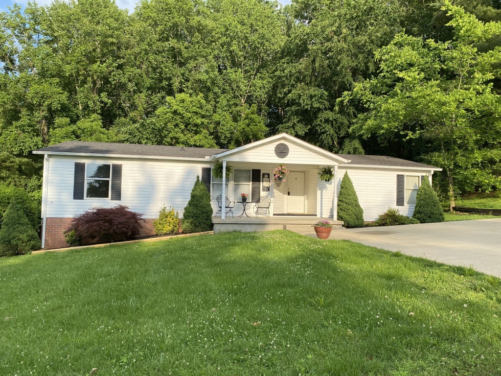 This well maintained home is MOVE-IN READY! Nestled in a quiet established neighborhood, this immaculate 3-bedroom 2-bath manufactured home on a permanent foundation sits on a spacious corner lot and is ready for its next family! Large kitchen with beautiful countertops, lots of cabinets/storage and comes with all appliances. Gorgeous new LVT flooring in kitchen, utility room & primary bathroom. A freshly cleaned wooden back deck overlooks a large backyard lined with trees. 10x12 storage building stays with the property. Cozy covered front porch is perfect for sipping morning coffee while admiring the beautiful landscaping. This home is a must-see just minutes from town!