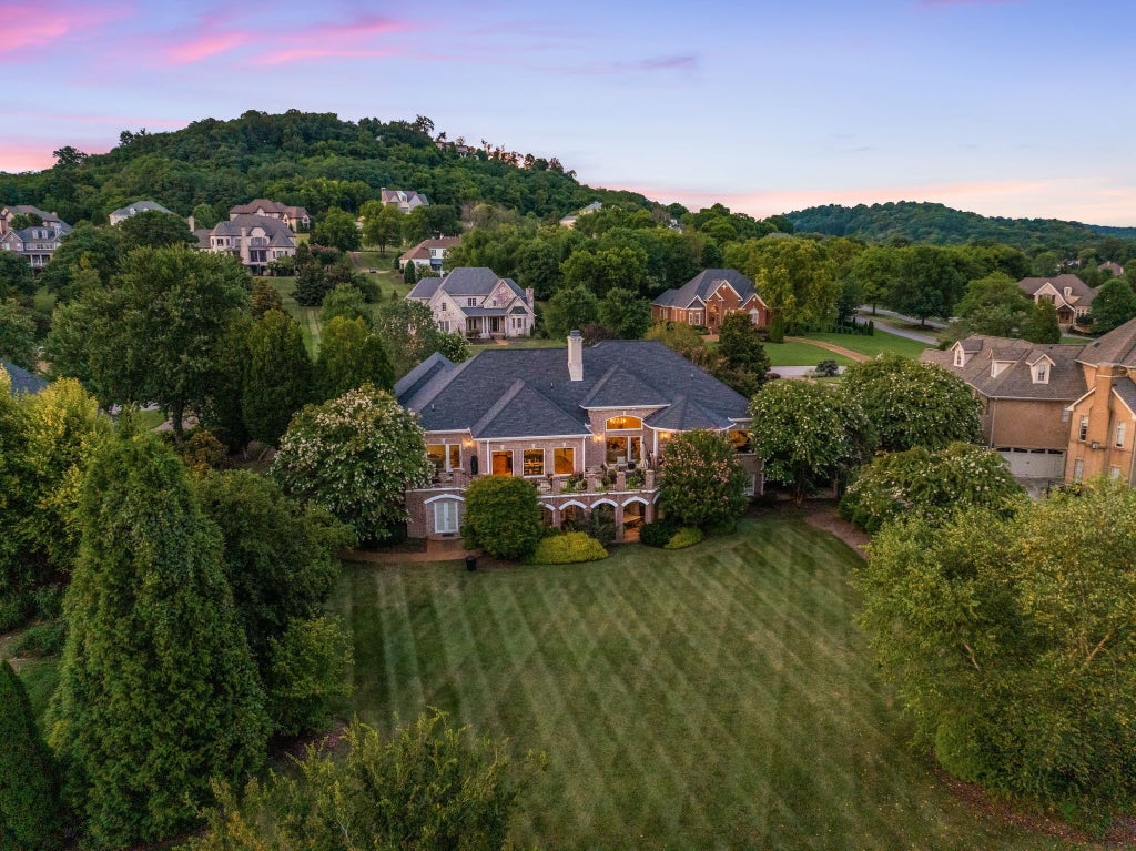 Experience refined living at 805 Legends Glen Court, situated on a 1.02-acre flat lot with serene lakes views. The fenced backyard offers privacy and space, while the covered front porch, expansive back balcony, and lower patio create a seamless indoor-outdoor living experience. Step inside to discover a bright, open floor plan where a formal dining room seamlessly transitions into the inviting living area, anchored by a cozy fireplace and framed by large windows that flood the home with natural light. The chef’s kitchen features a generous island, double ovens, and a gas cooktop, ideal for both everyday living and entertaining. This home boasts two primary suites on the main level, providing flexible living arrangements. You’ll find spaces designed for every lifestyle, including a media room, home gym, billiard room, a recreation room with a wet bar, and a flex space with a doggy door. Additional highlights include a three-car garage and an ideal location just minutes from top-rated schools, shopping, dining, and the many attractions of Franklin.