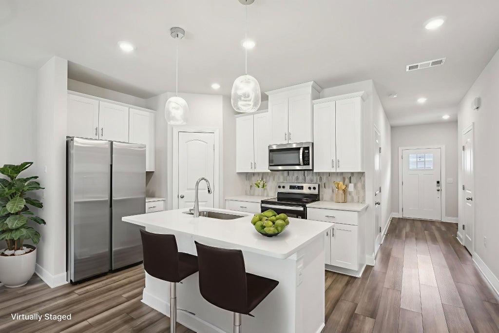 Better than new with many updates!! **BRING YOUR OFFERS!** Receive lender paid closing costs up to 1% of loan amount if you choose one of our preferred lenders! Beautiful energy-efficient townhome only four years old. Freshly painted 3-bedroom, 2.5-bath, offers a modern kitchen with sleek stainless-steel appliances, white cabinets, granite countertops, island kitchen and a pantry. Home has energy efficient foam insulation with energy appliances including brand new stove and keyless entry. Upstairs boasts primary bedroom, on suite with double vanity, and a walk-in closet. Two additional bedrooms plus a bonus area, including another bathroom and a conveniently located laundry room. Home has a patio out back for entertaining and a porch area on the front of home. One car garage with ceiling mounted storage, tool or storage cabinet, a utility rack for bikes or tools and the floor has a beautiful epoxy floor finish and painted too!. LVP flooring and all updated light fixtures. Home includes washer, dryer, refrigerator, stove, microwave, dishwasher and blinds. Amenities include a community pool, a dog park and sidewalks throughout. Near downtown, shopping, dining, daycare and fitness. Close proximity to the Music City Star commuter train station. Home Insurance covered in HOA fees!
