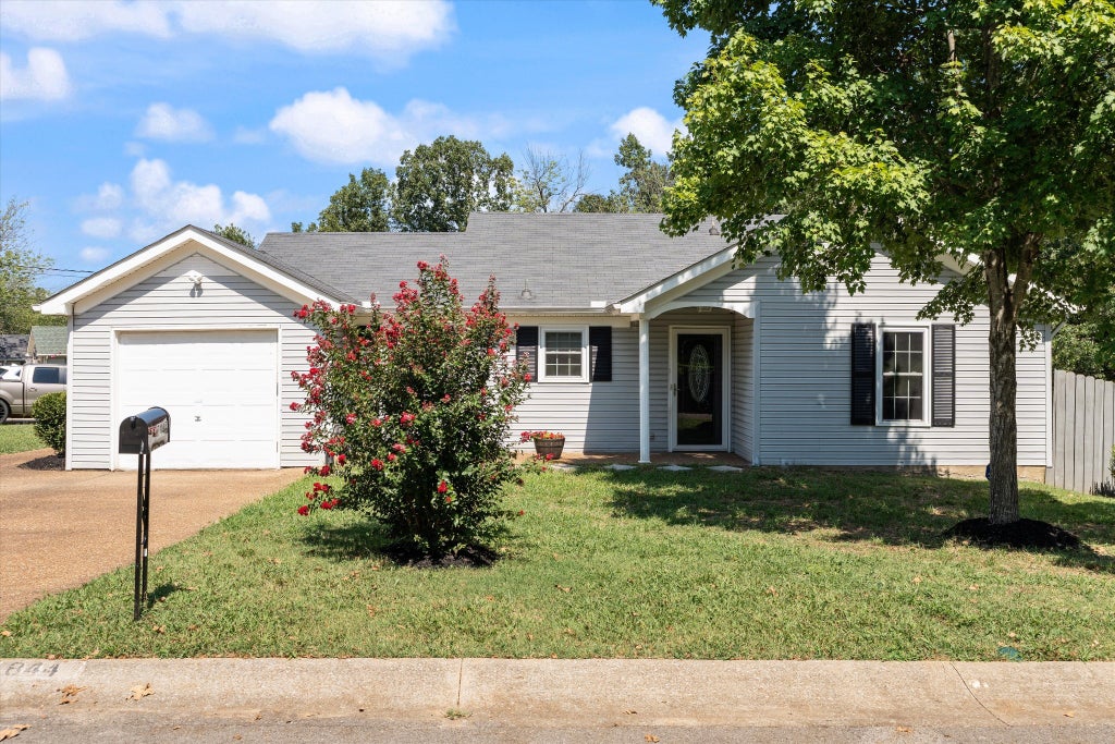 Welcome to 844 Trailside Circle! This charming single-level home has been updated with fresh paint, granite countertops, and an upgraded stone-tile wood-burning fireplace. The kitchen features new appliances and modern finishes, while two bedrooms and one Jack-and-Jill style bath create a cozy, functional layout. Recent improvements include an updated HVAC, water heater, and gutter guards. Situated on a fenced-in corner lot, the property offers both privacy and outdoor space. Conveniently located near Percy Priest Lake, shopping, dining, and just 15 minutes from Mt. Juliet and Providence Mall. It’s a great fit for first-time home buyers, downsizers, or investors seeking low-maintenance living in a growing Nashville-area community.