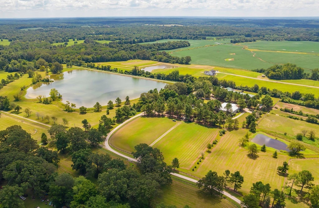 Recreation abounds with an 8-acre stocked fishing lake featuring a pier, fountain, and trophy-sized fish — perfect for guests, family fun, or events. The 5,139 SF plantation-style main home is a true Southern showpiece with grand columns, sweeping lake views, and an in-ground pool with a new liner. The 2,200 SF one-level guest home provides excellent space for guests, staff, or lucrative Airbnb rental income.