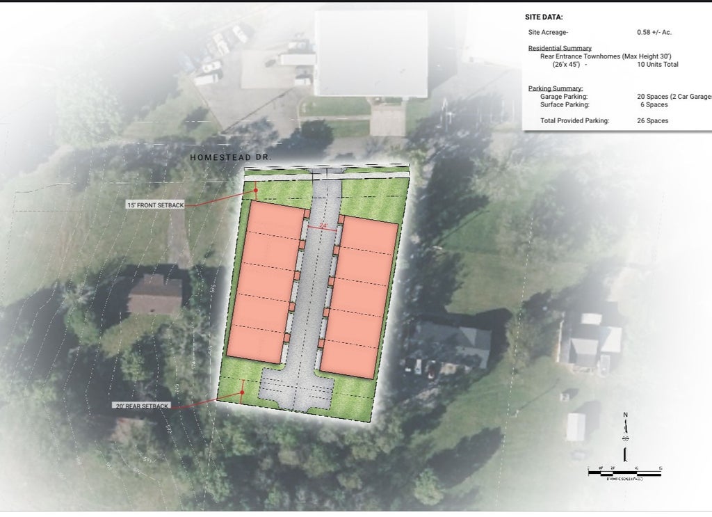 Zoned CS. Allows for multifamily residential use or commercial use. Conceptual Site plan attached. 10 units. This street is poised for major development with several parcels being bought and developed recently.