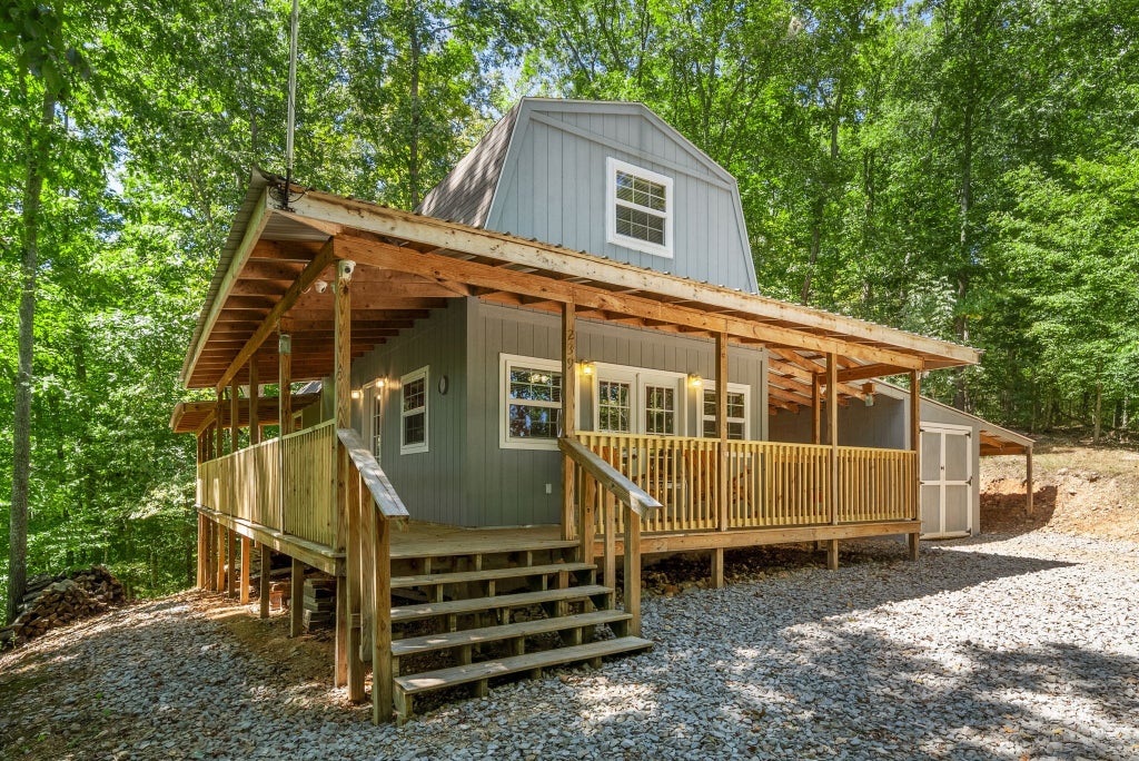 This is a meticulously cared for two-story cabin featuring one bedroom and one bathroom, perfectly nestled on a scenic ridge surrounded by beautiful trees, with a tranquil meadow stretching below for stunning views and serene privacy. Adding to its appeal, the property backs onto 400 acres of State Forest, providing remarkable opportunities for outdoor recreation and exploration or for wildlife observation or hunting.The cabin offers two spacious living areas, a well-equipped kitchen, and a whole-house water filtration system—drawing from clean, reliable well water. Enjoy comfort and productivity with high-speed internet, an additional versatile room ideal for bunk beds or a dedicated office space, and a classic stone fireplace that sets a cozy ambiance.