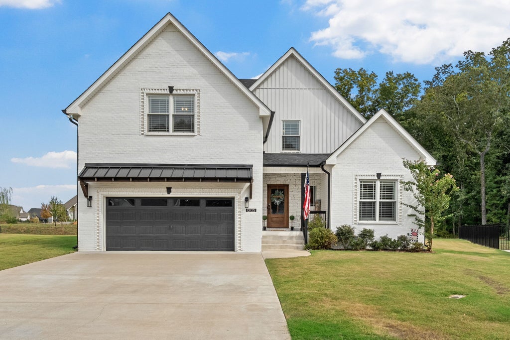 This charming farmhouse style home offers incredible curb appeal and an inviting lifestyle before you even step inside. Situated on nearly half an acre in a quiet cul-de-sac, the property provides plenty of space for outdoor fun whether it’s playing sports on the lush Bermuda lawn, gathering around a (potential) firepit on the paver patio, or relaxing on the covered back porch. Storage is never an issue with a two-car garage and custom-built shed. Inside, natural light and thoughtful design welcome you in. The main level features two bedrooms, including a versatile flex room or office and a spacious primary suite with wood flooring, plantation shutters, an oversized tile shower, a custom closet, and plenty of room for furniture. The open living room is warm and inviting with its vaulted ceiling and cozy gas fireplace. The kitchen is equally impressive with granite countertops, stainless steel appliances (including a double oven), and both formal and casual dining areas to fit your lifestyle. Upstairs, you’ll find two additional oversized bedrooms plus a massive bonus room, offering endless possibilities for recreation, work, or storage. As part of Easthaven, you’ll also enjoy community amenities such as a pool, clubhouse, and playground, all just a short stroll away via a scenic wooded boardwalk. Move-in ready and full of character, this home perfectly combines comfort, style, and convenience in one of Clarksville’s most desirable neighborhoods.