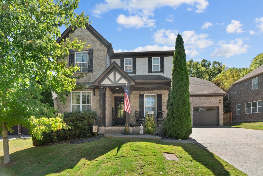 Gorgeous 4 bedroom, 3 bath home in the Highlands of Ladd Park on rare private tree-lined lot with covered/extended back patio. Oversized driveway and zero-step entry into home. Primary bedroom and office on first level with three bedrooms and BONUS room upstairs. Home was just re-sodded (entire yard) and fresh new carpet throughout the upstairs. Home features crown molding, newer 7.5" wide plank hardwood floors & upgraded light fixtures.Located in sought-after Ladd Park, residents enjoy community amenities including two pools, a basketball court, walking trails, and access to the Harpeth River.