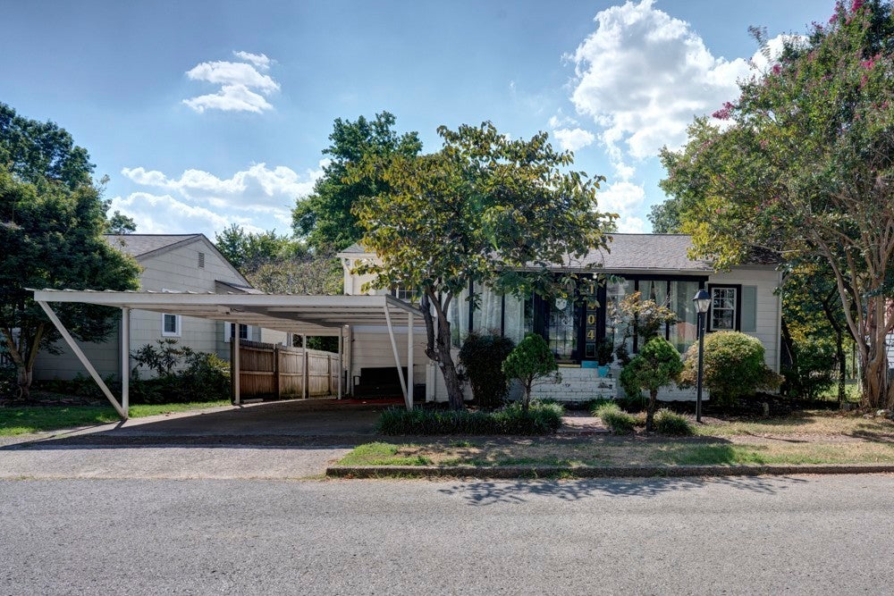 Experience life in the Village - Nashville's best-kept secret. Fun eclectic village home on lovely Clarke Street with mural artwork in living room commissioned by owner by artist Frances Berry and custom gold-leaf numbers by LSJ Signs. This home has a formal living room, huge dining room or flex room AND a log-cabin-inspired giant rec-room looking out across the yard and Rachel's Walk park. Serene views from the covered deck! Large back yard. Carport. Walk to restaurants, coffee shop, post-office, pharmacy, Amish deli, groceries, and the lake. Two full bathrooms, primary bedroom with walk-in closet, 2nd bedroom with large closets, electric fireplace, original hardwoods, large sun-porch, historic light-fixtures, washer/dryer and fridge will stay.