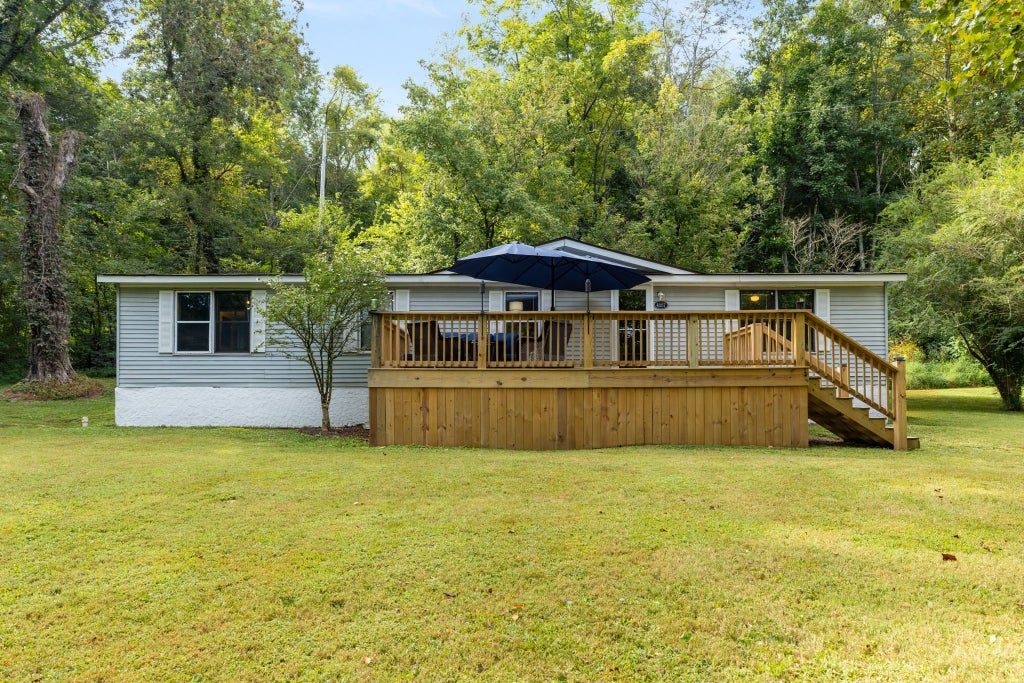 Privacy and convenience come together in this beautifully updated 3-bedroom, 2-bath home set on over 3.5 wooded and level acres, just minutes from the interstate. Inside, you’ll find new flooring throughout, a spacious open living area with a cozy wood-burning fireplace, and a formal dining room perfect for gatherings. The kitchen features modern white cabinets, a new stainless steel refrigerator, and a dishwasher. The private primary suite is thoughtfully separated from the main living spaces and offers a full bath with a tile shower. Both bathrooms have been stylishly updated for a modern feel. Step outside to your own private retreat, complete with a brand-new oversized deck, screened-in porch, firepit area, and a new storage shed. With a new roof and Nest thermostat already in place, this home combines comfort and efficiency. Tucked away for peace and tranquility yet less than 10 minutes to restaurants, shopping, and more—this property is the perfect balance of seclusion and accessibility.